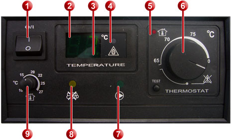 Der Regler ist ein Gerät, das für die Einstellung der Kesseltemperatur bestimmt ist. Die Temperatur wird auf dem durch den Benutzer bestimmten Niveau durch Steuerung der Drehzahl des Drucklüfters aufrechterhalten. Der Regler misst ständig die Wassertemperatur im Kessel, zeigt sie im Display an und steuert entsprechend den Betrieb der Umlaufpumpe der Zentralheizung.